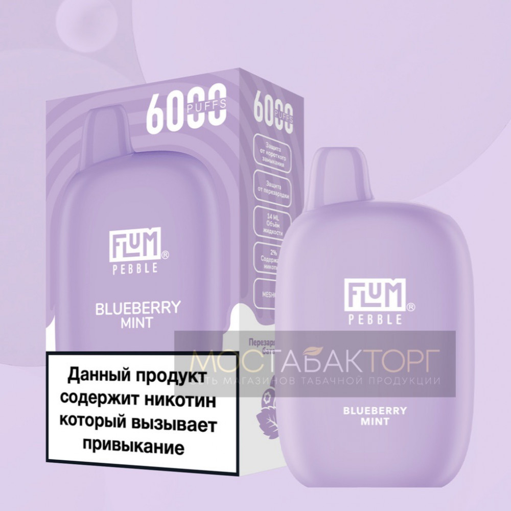 FLUM видыPebble | FLUM вкусыЧерника Мята | FLUM количество в блоке10 шт |
